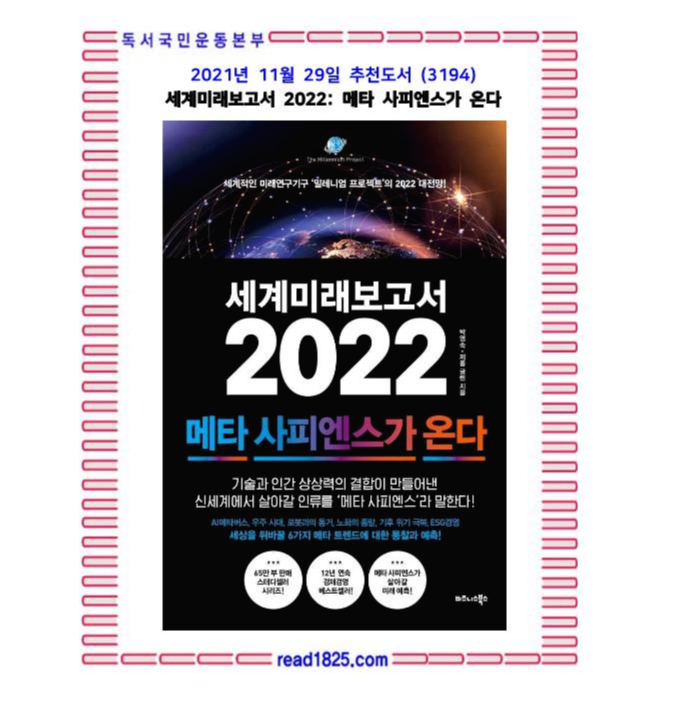 11월의 추천도서 (3194) 세계미래보고서 2022: 메타 사피엔스가 온다