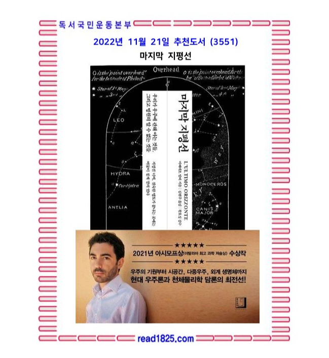 이 책은 과학 서적으로는 드물게 베스트셀러에 오르며 이탈리아 대중의 큰 사랑을 받은 저작물이다. 특별히, 이탈리아 정부가 주관한 2021년 아시모프상(Premio Asimov 2021) 수상작으로 선정되는 등 이탈리아 최고의 대중 과학 저작으로 평가받기도 했다. 아시모프상은 유명한 작가이자 과학자인 아이작 아시모프를 기려 만든 여러 상 중 하나로, 이탈리아어로 편집된 책 중에서 가장 우수한 대중 과학 저작물에 수여되는 이탈리아 과학계에서 가장 권위 있는 상이다. 이 상이 특별한 이유는 1만 명의 고등학생, 고등학교 선생님, 연구원, 대학원생, 교수, 기자 등 다양한 분야의 사람들이 참여해 읽고 검토하고 직접 투표해서 결정되는 만큼 많은 사람의 사랑을 받은 책이라는 점이다. 여러모로, 내용의 깊이 못지않게 읽는 재미가 아주 인상적인 책이다. 왜 많은 이탈리아 사람들이 이 책을 최고의 과학서로 선택했는지 궁금하다면, 찬찬히 아득하고 먼 우주를 함께 만끽하기를 바란다.