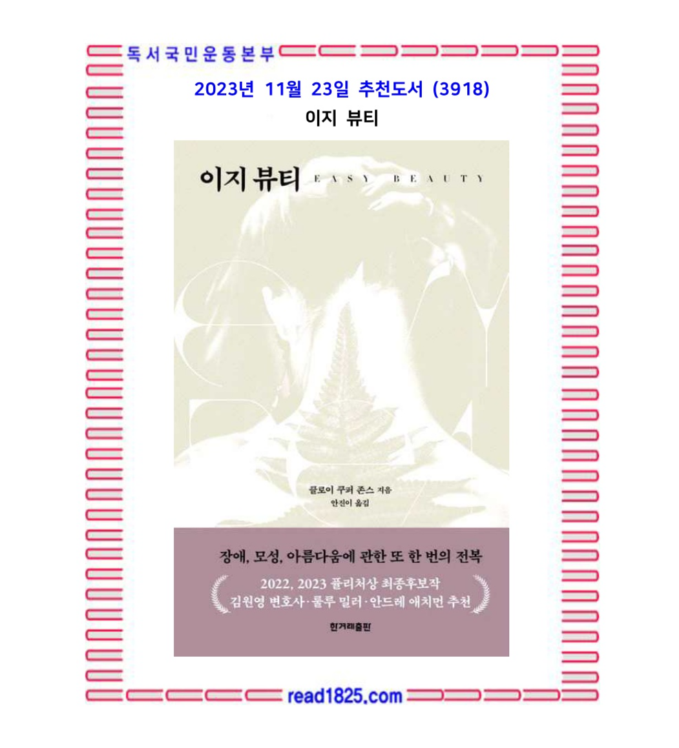 2022, 2023년 연속 퓰리처상 최종후보작으로 선정된 클로이 쿠퍼 존스의 첫 책 《이지 뷰티》가 국내에서 출간됐다. 선천성 장애 ‘천골무형성증’을 지니고 태어난 여성이자, 철학자, 한 아이의 엄마인 클로이 쿠퍼 존스는 책에서 장애로 인해 수없이 겪어야 했던 차별과 편견에 대한 치열하고도 다층적인 통찰을 보여준다. 이 책은 《물고기는 존재하지 않는다》의 저자 룰루 밀러, 《그 해, 여름 손님》의 저자 안드레 애치먼의 극찬을 받으며, 2022년 《워싱턴 포스트》 《뉴욕 타임스》 선정 최고의 책에 오를 만큼 대중적인 인기를 얻었다.