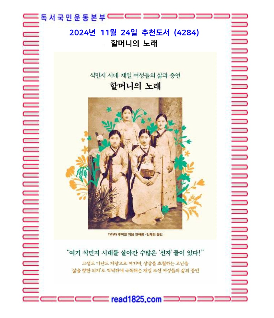 이 책은 식민지 전쟁 시대에 일본으로 건너가 온갖 역경을 지고 살아온 재일 1세 할머니들을 직접 만나 그들의 삶을 선명하게 기록한 르포르타주이다.