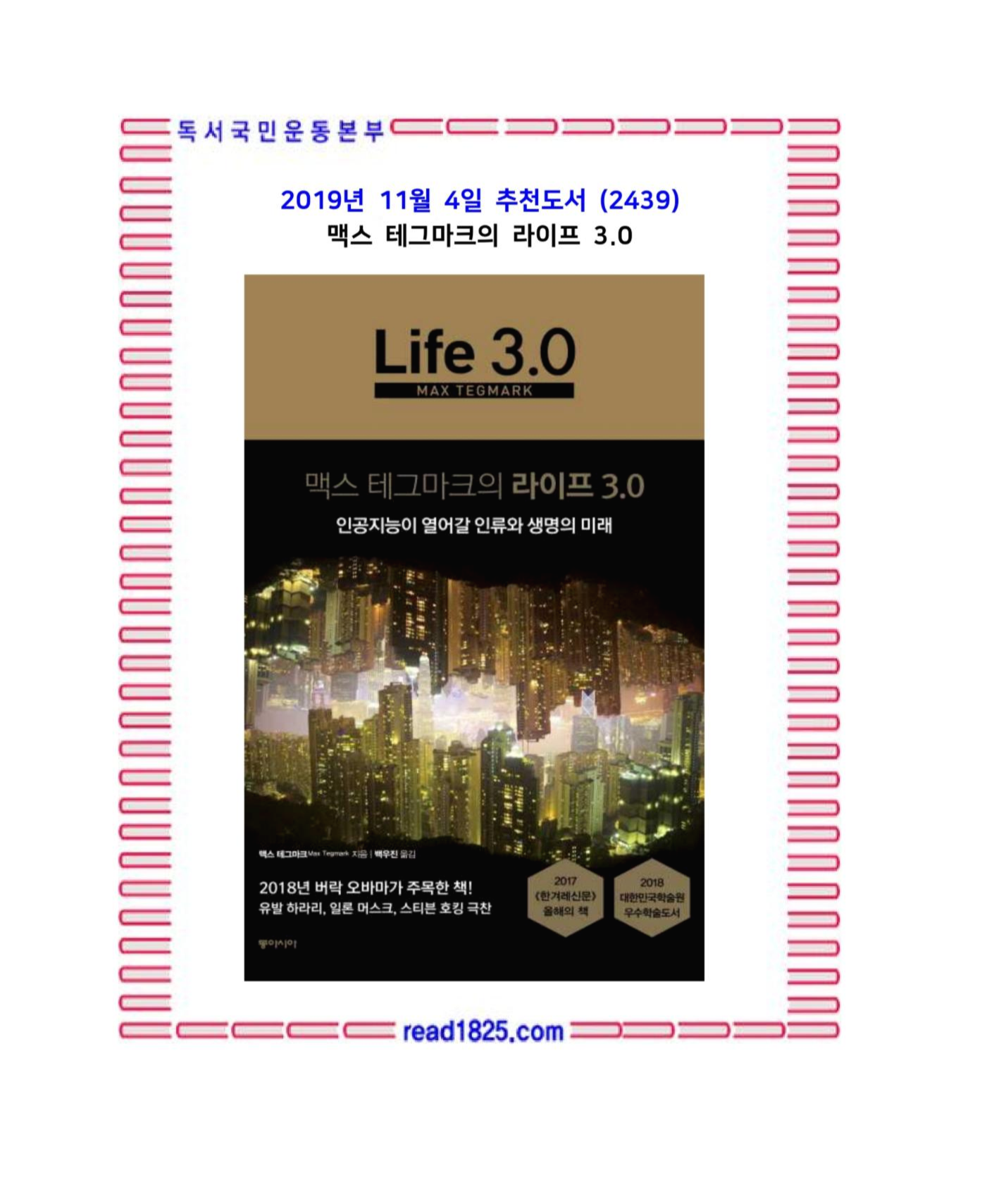다중우주론 분야에서 최고 권위를 지닌 물리학자이자 인공지능 시대를 대비하는 ‘생명의 미래 연구소(FLI)’의 공동설립자인 맥스 테그마크가 인공지능 논의에 대해 정리하여 엮은 『맥스 테그마크의 라이프 3.0』. 세계의 오피니언 리더들이 AI에 주목하고 있는 지금, 인공지능은 엄청난 발전을 거듭하고 있지만 얼마나 더 발전할지, 어떤 세상을 만들지 합의된 전망이 나오지 않고 있다.
