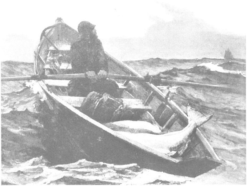 1952년에 '노인과 바다'가 출판되었다. 미국 소설가 어니스트 헤밍웨이(Ernest Hemingway, 1899~1961)는 작가로서 원숙기에 들어 힘찬 노인의 생명력을 그렸다. 해양문학을 이야기할때, 꼭 손꼽게 되는 세계 해양문학의 대표작이다. 작가는 아바나(Havana) 근교에서 오랫동안 살면서 스스로 보트를 저으며 트롤에 열중하는 등, 카리브 해의 상황과 바다낚시에 대하여 조예가 깊었다. 그 지식과 체험이 이 작품을 세부에 이르기까지 확고한 리얼리티를 부여하고, 바다의 세계를 그릴 수 있게 한 불굴의 힘이었을 것이다. (19p)