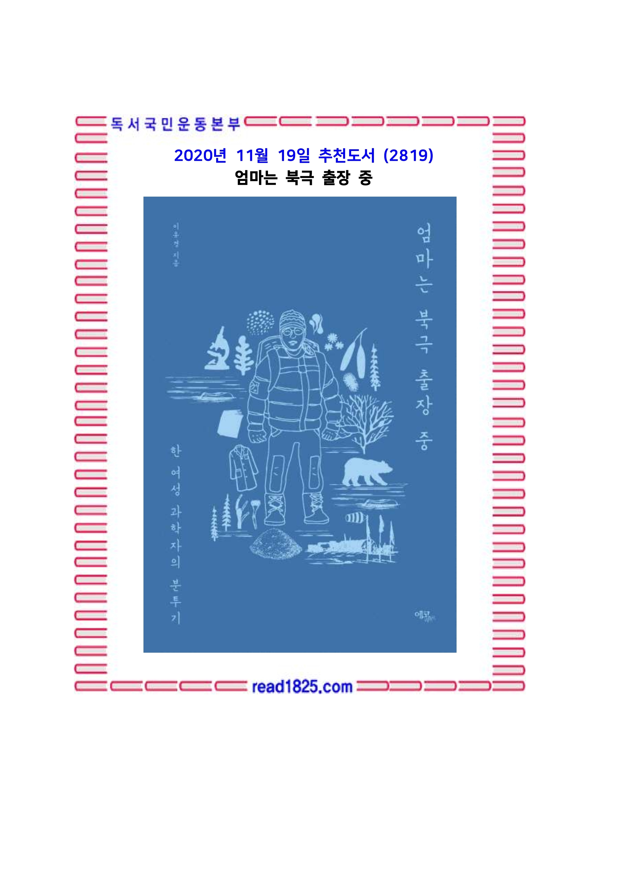 하지만 “기지 주변을 어슬렁거리는 북극여우와 여유 있게 풀을 뜯는 순록, 그리고 깨끗한 공기와 완전한 고요함……. 이런 것들이 있어 북극 탐사의 힘든 시간을 잊고 또다시 북극으로 향하게 된다”는 저자는 곧 또다시 노르웨이로 떠날 예정이다.