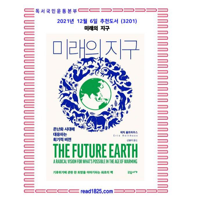 『미래의 지구』는 기후 저널리스트이자 기상학자인 에릭 홀트하우스(Eric Holthaus)가 선보이는 기후위기에 관한 한 희망을 이야기하는 최초의 책이다. 그간의 기후변화 관련 책이 인류의 위기를 경고하는 데 집중했다면, 이 책은 2020년부터 2050년까지 10년 단위로 인류가 기후위기를 극복해나가는 희망의 30년 서사를 담고 있다. 기후변화의 주요 원인으로 꼽히는 탄소 배출과 해수면 상승, 더욱 강력해진 허리케인, 심각한 홍수, 극심한 가뭄과 산불 등 인류의 생존을 위협하는 현장을 생생하게 보여주면서도, 종말론적인 시선에 그치지 않고 미래학자·기후학자·생물학자·경제학자·기후변화 운동가와 나눈 인터뷰를 통해 지구와 인간 사회가 공존할 수 있는 ‘미래의 지구’를 보여준다.