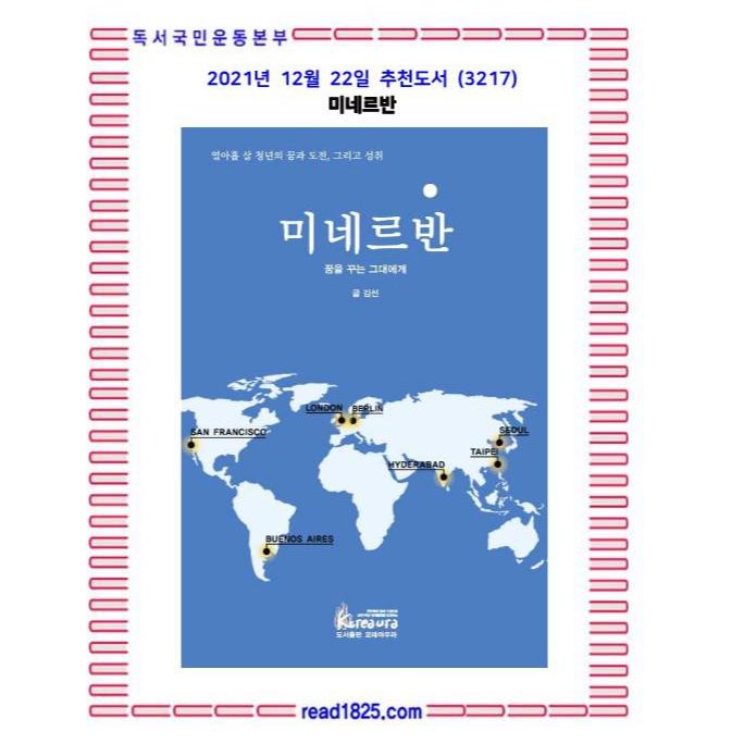 이 책의 제목은 전국 공모를 통해‘미네르반’으로 결정되었습니다.‘미네르반(MINERVAN)’은 미네르바 스쿨에 다니는 재학생들이 스스로에 대해 자부심으로 일컫는 상징적인 단어입니다.
