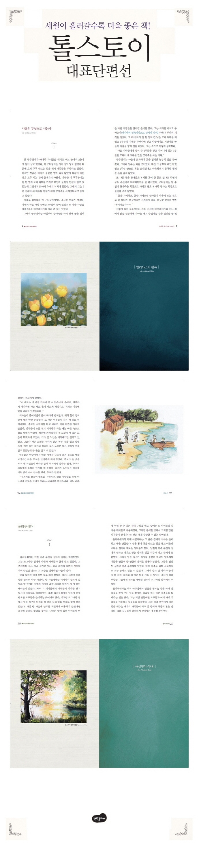 이 책에 수록된 톨스토이의 작품들은 분주하고 각박한 세상을 살아가는 우리들에게 따뜻한 위로와 깨달음을 줄 것이다.