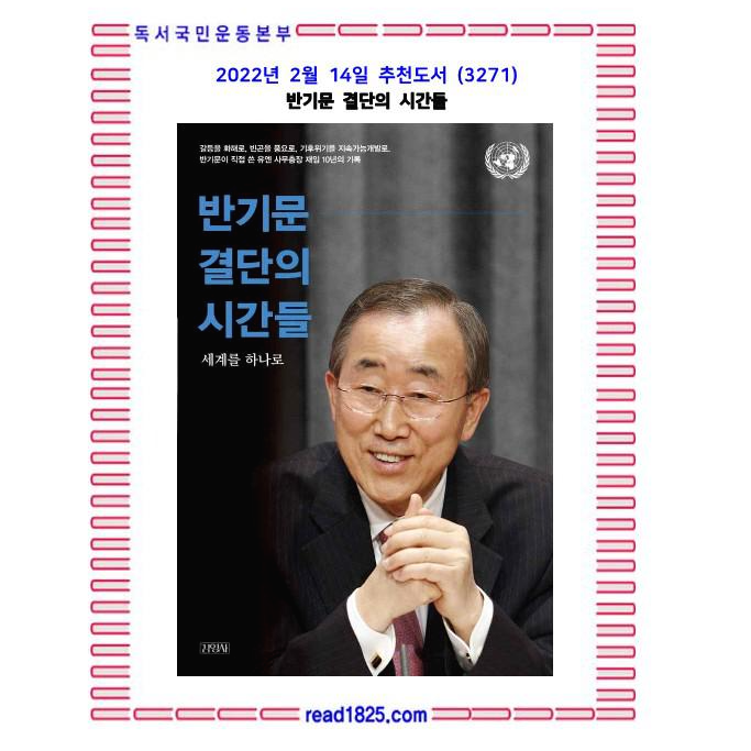 ‘지속가능발전목표’와 ‘파리기후변화협약’은 자타공인 유엔 사무총장으로으로서의 최대 업적이다. 이것은 반기문이 빈곤과 기후위기를 해결하기 위해, 분쟁과 갈등을 중재하기 위해 단호하게 결심하고 성실하게 활동해왔기 때문에 가능했던 성과다. 그가 재임 기간 만났던 사람, 겪었던 사건을 통해 우리가 꿈꾸는 미래를 조금 더 일찍 만나기 위한 조건을 확인할 수 있다. 《반기문 결단의 시간들》은 반기문이 직접 쓴 최초이자 유일한 책으로, 한국어판에서는 특별히 새로운 내용을 추가했다. 남북한 관계를 더욱 심도 있게 다루었으며, 반기문의 정치 참여 과정과 그에 대한 소회도 풀어냈다.
