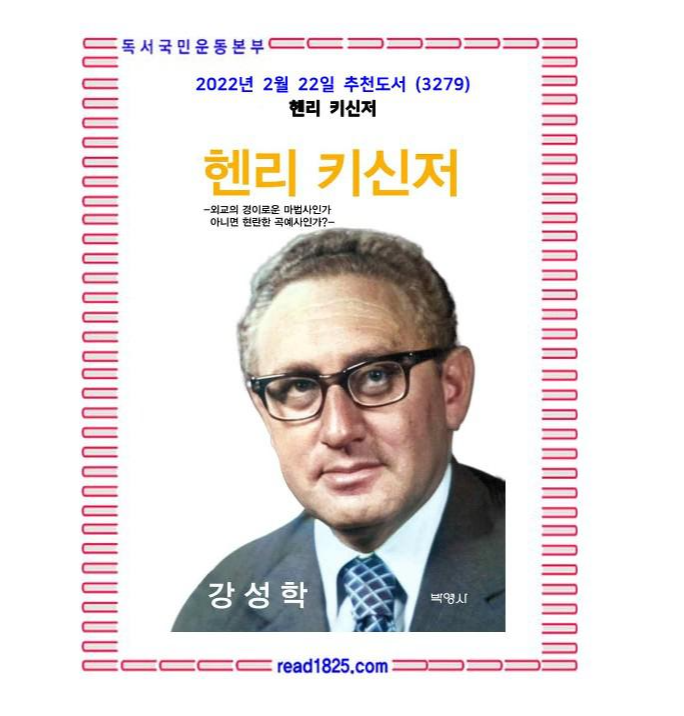 내가 헨리 키신저를 처음으로 알게 된 것은 1969년 2월에 그가 〈타임〉(Time)지에 사진과 함께 커버스토리로 등장했을 때이다. 당시 학부생으로서 영어공부를 위해 타임지를 정기구독하고 고려대 SIS(속칭, 타임반) 동아리 활동을 했지만 그에 관한 기사를 모두 읽어낼 영어실력이 되지 않아 피상적으로만 알게 되었다. 그러나 그 후 그가 당시에 보던 일간신문과 〈타임〉지에 빈번하게 등장하여 그에 관한 관심이 내게서 사라지지 않았다.