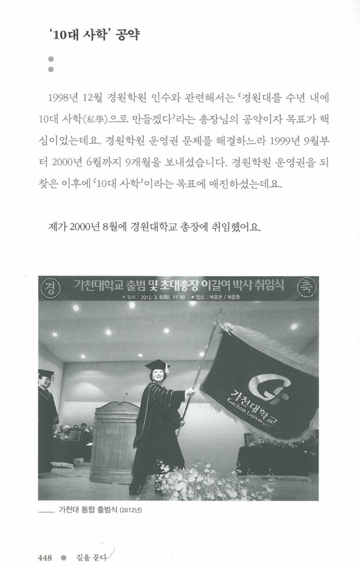 인재 양성을 위해 1998년 가천의과학대학교를 설립했으며, 경원대학교를 인수했다. 2012년에는 4개 대학을 통합해 학생 수 기준으로 수도권 사립 3위 규모인 ‘가천대학교’를 출범시켰다. 사재를 포함해 1천 6백억여 원을 들여 뇌과학연구소와 이길여 암ㆍ당뇨연구원을 설립하는 등 기초 의과학 발전에 심혈을 기울여 2009년 정부로부터 최고 등급의 과학기술훈장을 받았다.