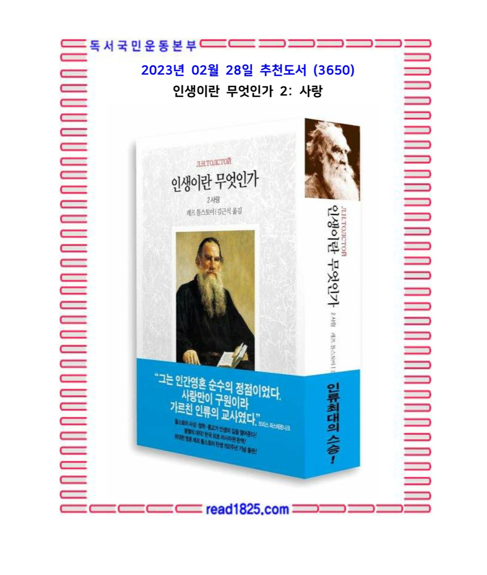 부유한 지주 귀족의 아들로 태어나 어느 시골 초라한 간이역에서 폐렴으로 세상을 떠나기까지 톨스토이는 늘 인생에 대해 절박한 고뇌를 체험하고 거기서 얻은 사상을 현실에서 구현하려고 애썼다. 러시아의 부조리와 죄악에 대해 인류 위대한 사상가들처럼 행동하는 지성으로 대신 속죄하려고 했던 것이다. 『인생이란 무엇인가』는 도덕적 저술가로서 인간의 양심을 크게 뒤흔들어 놓은 톨스토이의 마지막 저작이다. 그 생애 만년을 장식하며 인간으로서 참된 행복이 무엇인지 스스로 일생을 통해 얻은 교훈을 집대성한, 시대를 뛰어넘는 위대한 삶의 지침서라 할 수 있다. 얄팍한 처세술을 담은 수많은 출판물이 홍수처럼 쏟아지는 이때, 평생을 옆에 두고 음미하며 깊이 생각할 시간을 주는 『인생이란 무엇인가』는 단연 눈부신 책이 아닐 수 없다. 「1진리」「2사랑」「3행복」의 전 3권을 완간하며 이제 우리는 부활한 톨스토이의 영혼과 반갑게 마주하게 되었다.