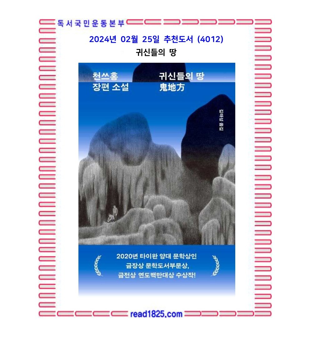 국내에 처음으로 소개되는 타이완의 젊은 거장 천쓰홍의 장편 소설 『귀신들의 땅』이 민음사에서 출간되었다. 한 일가족을 중심으로 타이완의 아픈 현대사를 담아낸 걸작 『귀신들의 땅』은 타이완에서 가장 큰 양대 문학상인 ‘금장상 문학도서부문상’과 ‘금전상 연도백만대상’을 수상했으며, 12개 언어로 출간되어 《뉴욕타임스》 베스트셀러에 오르기도 했다.
