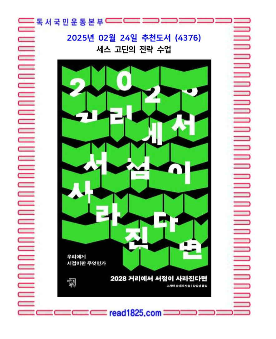 | 2월의 추천도서 (4375) 2028 거리에서 서점이 사라진다면 (1) | 2025.02.23 |