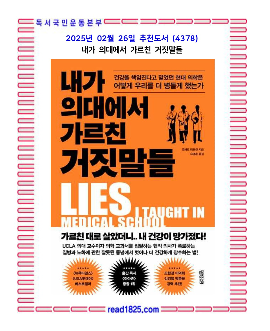 출처: 「 내가 의대에서 가르친 거짓말들 」 출판사 정말중요한