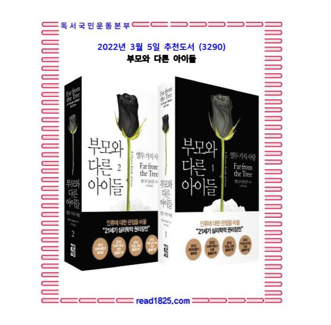 이 책에서, 앤드루 솔로몬은 아이의 발달에 있어 부모의 사랑보다 더 강력한 것은 없다는 점을 일깨운다. 이 위대한 책은 우리가 쉬 상상할 수도 없는 상황에 처한 이 땅의 어머니와 아버지들을 소개한다. 그들은 그 앞에 놓인 난관이 무엇이든 그들의 아이가 스스로 특별하다고 느끼도록 만든다. - 빌 클린턴