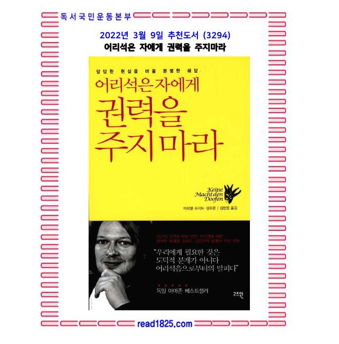 답답한 현실을 바꿀 분명한 해답 『어리석은 자에게 권력을 주지마라』. 과학·인류학·윤리 사회 이론을 연구하는 철학박사이면서 이슈를 부르는 문제적 작가, 두려움을 모르는 사상가, 작곡가이자 뮤지션으로 불리는 미하엘 슈미트-살로몬이 종교, 경제, 정치, 문화와 교육 제 방면에 걸쳐 힘 있는 자들의 광기적 행동을 적나라하게 고발하였다. 저자는 인간의 체념적이고 어리석은 내면을 정면으로 직시하여, 인간의 본성을 ‘호모 사피엔스가 아닌 호모 데멘스, 즉 광기의 인간’으로 보았으며, 인간에게 있어 현명함을 과거와 현재를 통틀어 결핍된 요소라고 지적한다. 나만 살고 보자는 행운의 편지식 경제 논리, 여론이 정책 결정의 내비게이션이 된 정치가, 중세 신화시대의 보수적 종교 관념을 새 시대의 아이들에게 주입하는 종교 지도자 등 부조리한 현실에 가하는 저자의 신랄한 비판을 고스란히 담아냈다.