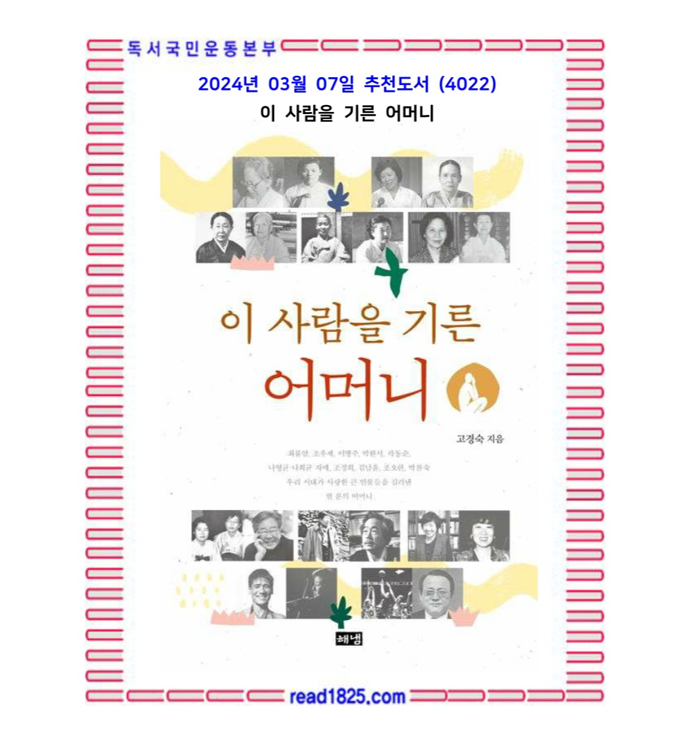 출처: 「 이 사람을 기른 어머니 」 출판사 해냄출판사