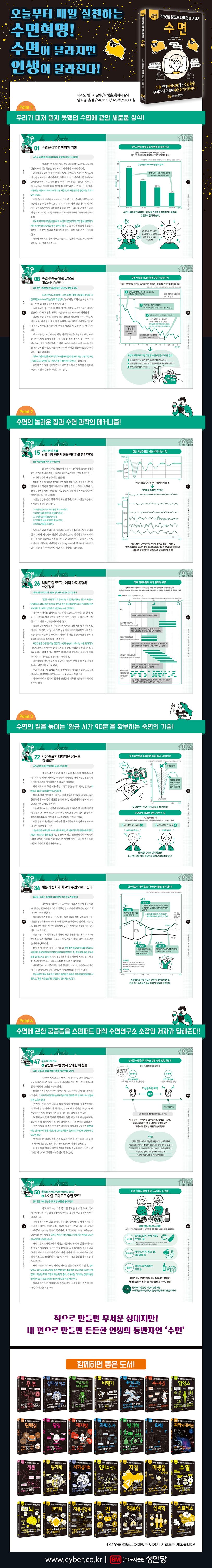 이 책은 수면의 중요성과 어떻게 수면을 취할 수 있는지, 그리고 단순히 잠을 자는 것 이상으로 제대로 된 숙면 습관을 갖는 법, 잘못된 수면 상식까지 바로잡으며, 어떻게 해야 수면 부채를 줄이고 건강한 숙면 습관을 만들 수 있는지 등 수면에 관한 모든 것을 담아냈다.