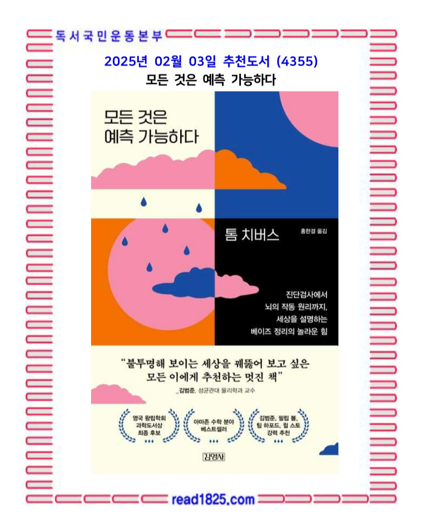 이 책은 단순히 수학의 한 분야를 다루는 책이 아니다. 믿음을 갱신할 줄 아는 태도, 확률적 사고를 통해 불확실성을 다루는 능력이 베이즈 정리에 담겨 있다. 우리가 세상을 더 합리적으로 바라보고, 정보의 홍수 속에서 현명하게 살아가는 법을 알고자 할 때 베이즈 정리는 필수적인 나침반이자 지도가 될 것이다.