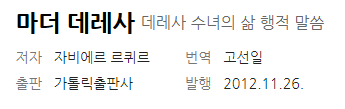 나도 누군가의 마더 데레사, 그래도 사랑하라!