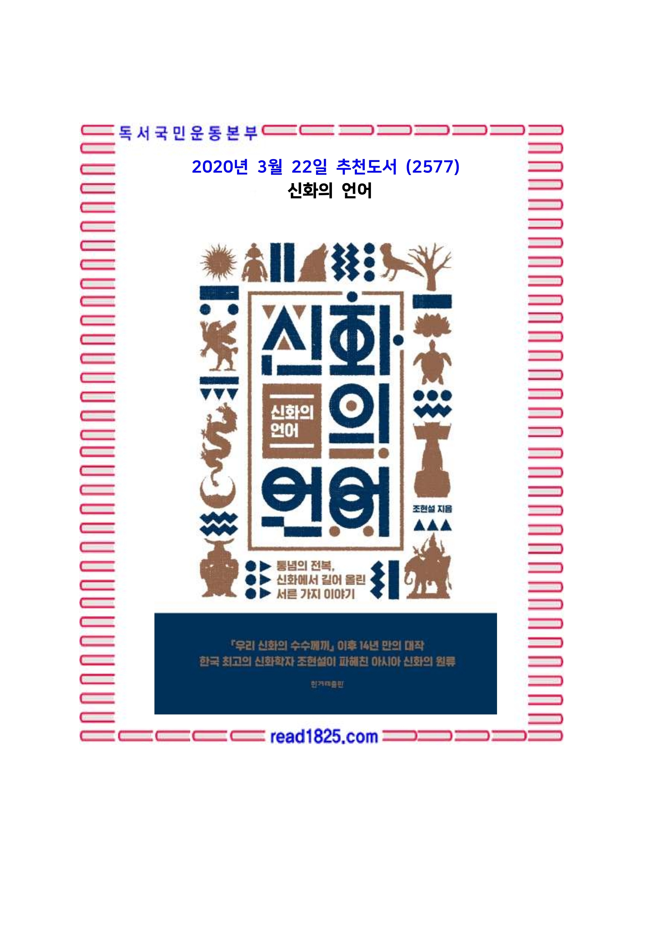 그래서 ‘신화의 언어’를 읽는 일은 인류의 가장 오래된 기억과 문화가 담긴 이야기를 통해 공존과 협력의 지혜를 모색하고 우리가 사는 세상의 숨은 뜻을 찾는 일, 곧 인간과 세계를 읽고 해석하는 일이다.