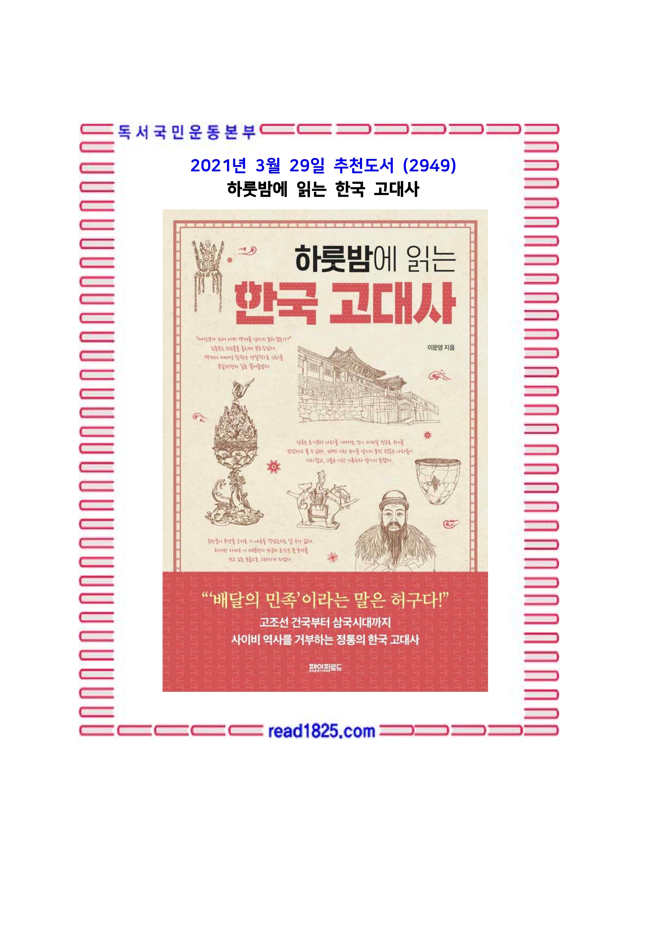 [하룻밤에 읽는 한국 고대사]에는 우리가 익히 알고 있던 역사와는 조금 다른, 그렇지만 결코 사이비 역사는 아닌 내용들이 다채롭게 들어 있다. 고조선에서 발해 건국까지를 다루고 있다. 일반적으로 우리 역사의 시작이라고 하는 단군으로부터 삼국시대라 일컫는 시대까지를 한 권 안에서 이야기하고 있는 셈이다.