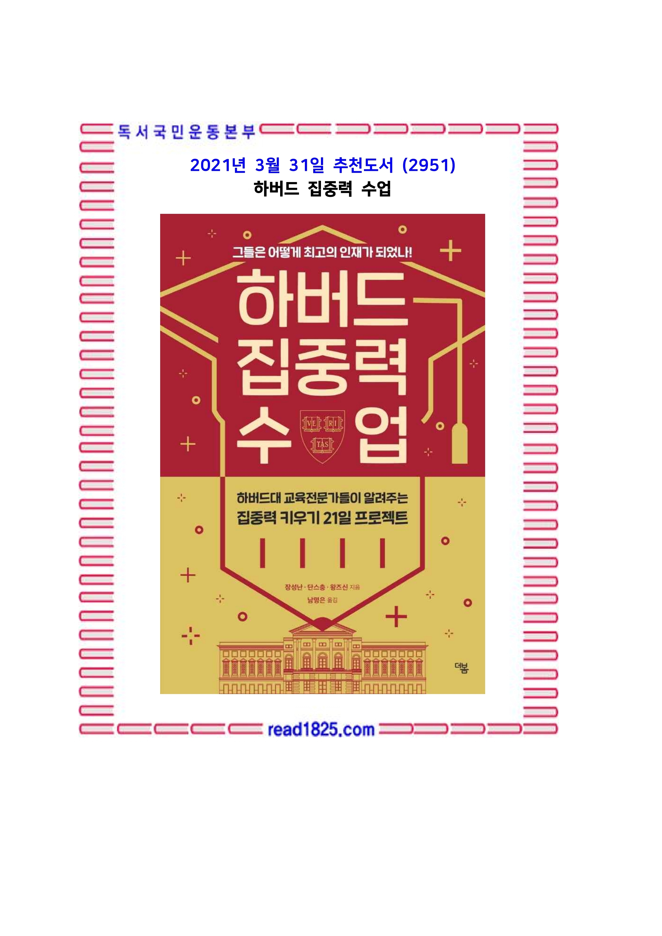 더봄 하버드 집중력 수업+선물 제공