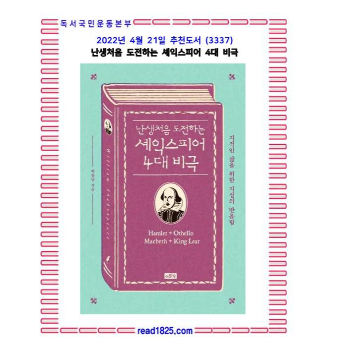 | 4월의 추천도서 (3338) 난생처음 도전하는 셰익스피어 5대 희극 (0) | 2022.04.22 |