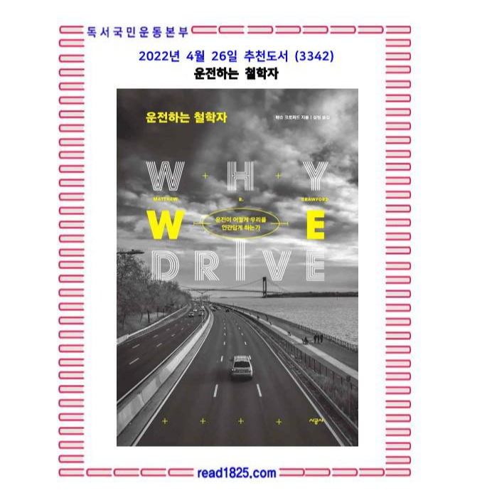 이 책은 운전, 즉 운전석에 앉아 핸들을 돌리고 브레이크를 밟는 행위에 관한 것이다. 대상이 자전거가 되었든, 오토바이가 되었든, 자동차가 되었든. 그렇다면 운전이 뭐가 그렇게 특별할까? 운전에 어떤 특별한 점이 있기에 철학자 매슈 크로퍼드Matthew B. Crawford가 오로지 운전이라는 주제로 책 한 권을 썼을까? 바로 이 질문이 《운전하는 철학자(원제: Why We Drive)》의 생명이다.