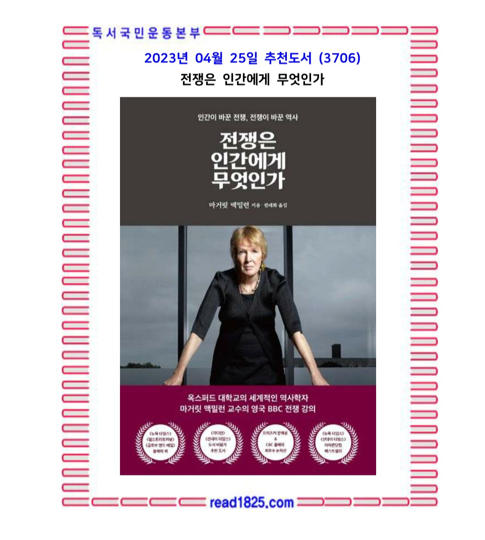 너무나 술술 잘 읽히는 전쟁 역사서이다. 이 책에서 마거릿 맥밀런은 전쟁을 이해하는 것이 우리에게 어떤 의미가 있는지를 다양한 역사적 예를 통해 설득력 있게 설명한다. 우리는 이 책에서 인간의 감정과 사고방식, 선이나 악을 행하는 능력도 이해할 수 있다.