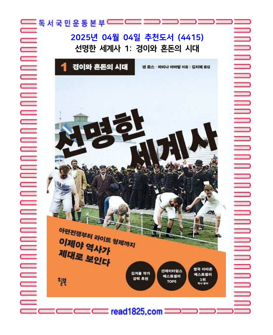 근현대사 속 가장 중요한 200장면을 선명한 사진과 생생한 스토리텔링으로 구성해 극찬을 받았던 베스트셀러 『역사의 색』. 2025년, 상식적인 미래를 꿈꾸며 역사가 제시하는 올바른 방향을 탐구하고자 하는 한국 독자들을 위해 새로운 이름 ‘선명한 세계사’로 다시 한번 출간되었다.