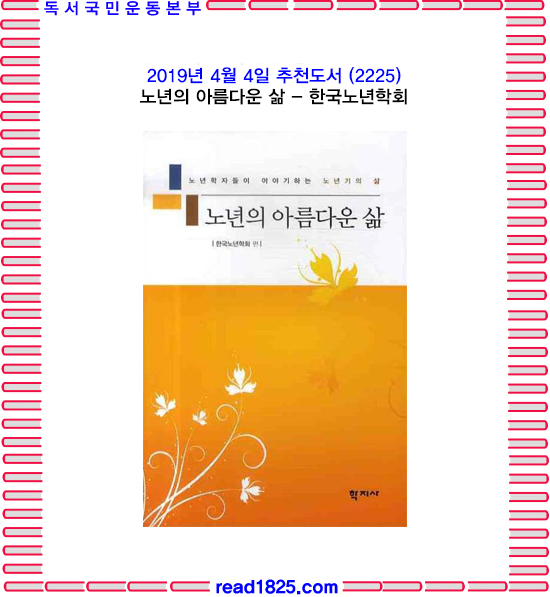 | 4월의 추천도서(2224) 노년을 더 활기차게 - 한네그레트 하스 (0) | 2019.04.03 |
