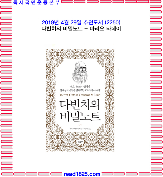 이 책은 단순히 다빈치의 생애나 업적을 다루는 책이 아니다. 이 책은 그가 천재 중의 천재가 될 수 있었던 비밀을 파헤친 100가지 이야기를 담고 있다. 다빈치처럼 되기를 원하여 도전을 두려워하지 않는 사람, 자녀를 다빈치처럼 키우고 싶은 부모들을 위한 책이다.