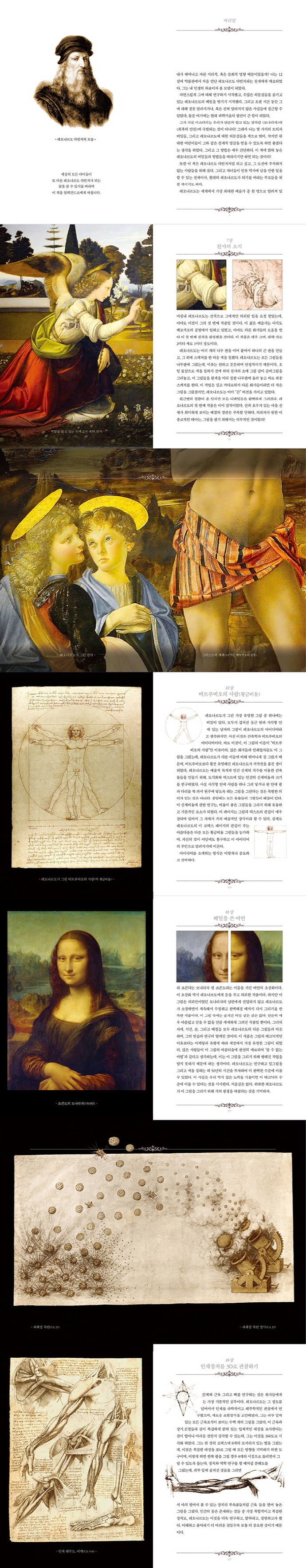 따라서 이 책은 단순히 다빈치의 위대함을 소개하고 찬양하지 않는다. 오히려 다빈치의 작품들을 소재로 하여, 그 작품이 만들어지는 과정과 배경에 방점을 둔다.