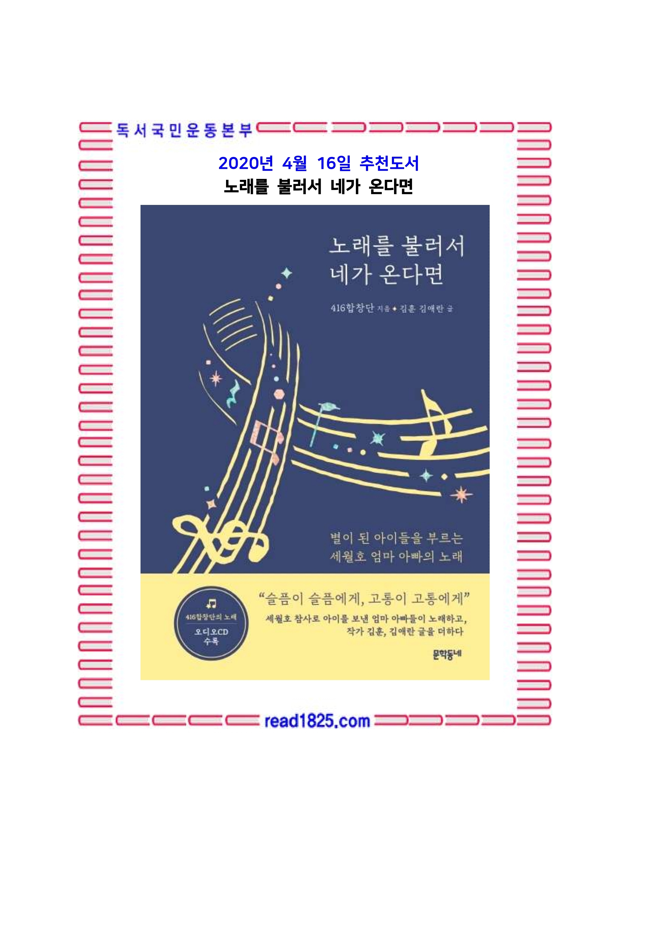4월의 추천도서(2602) 노래를 불러서 네가 온다면