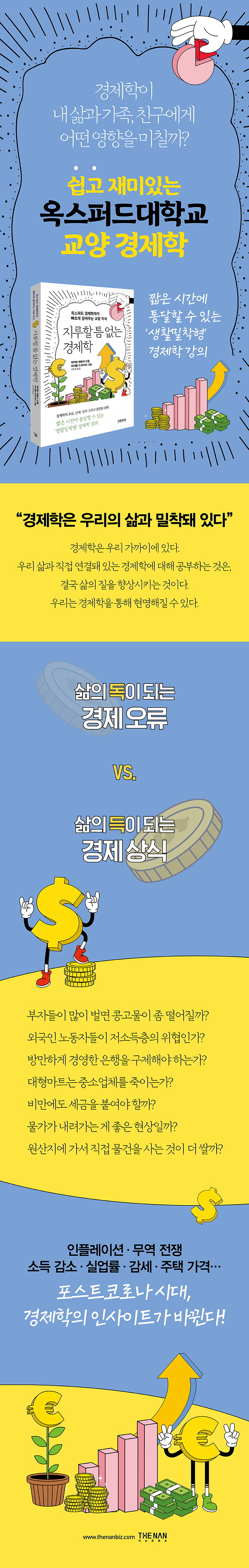 경제가 앞으로 어떻게 흘러갈지, 어떤 위기가 올지 예측하는 것은 항상 어렵다. 특히 지금처럼 하루가 다르게 급변하는 환경에서 글로벌 경제는 그 이전보다 더 큰 혼란에 빠질 수밖에 없다. 따라서 미래가 우리에게 무엇을 던지든 우리는 경제학 이면에 있는 ‘과학’을 이해해야 한다. 다가올 위기에 대처하기 위해 모두 경제학을 공부할 필요가 있다. 철저하게 실용적인 관점에서 경제학이 내 삶과 얼마나 밀접한지, 내 가족과 친구에게 어떤 영향을 미칠지 살펴야 한다.