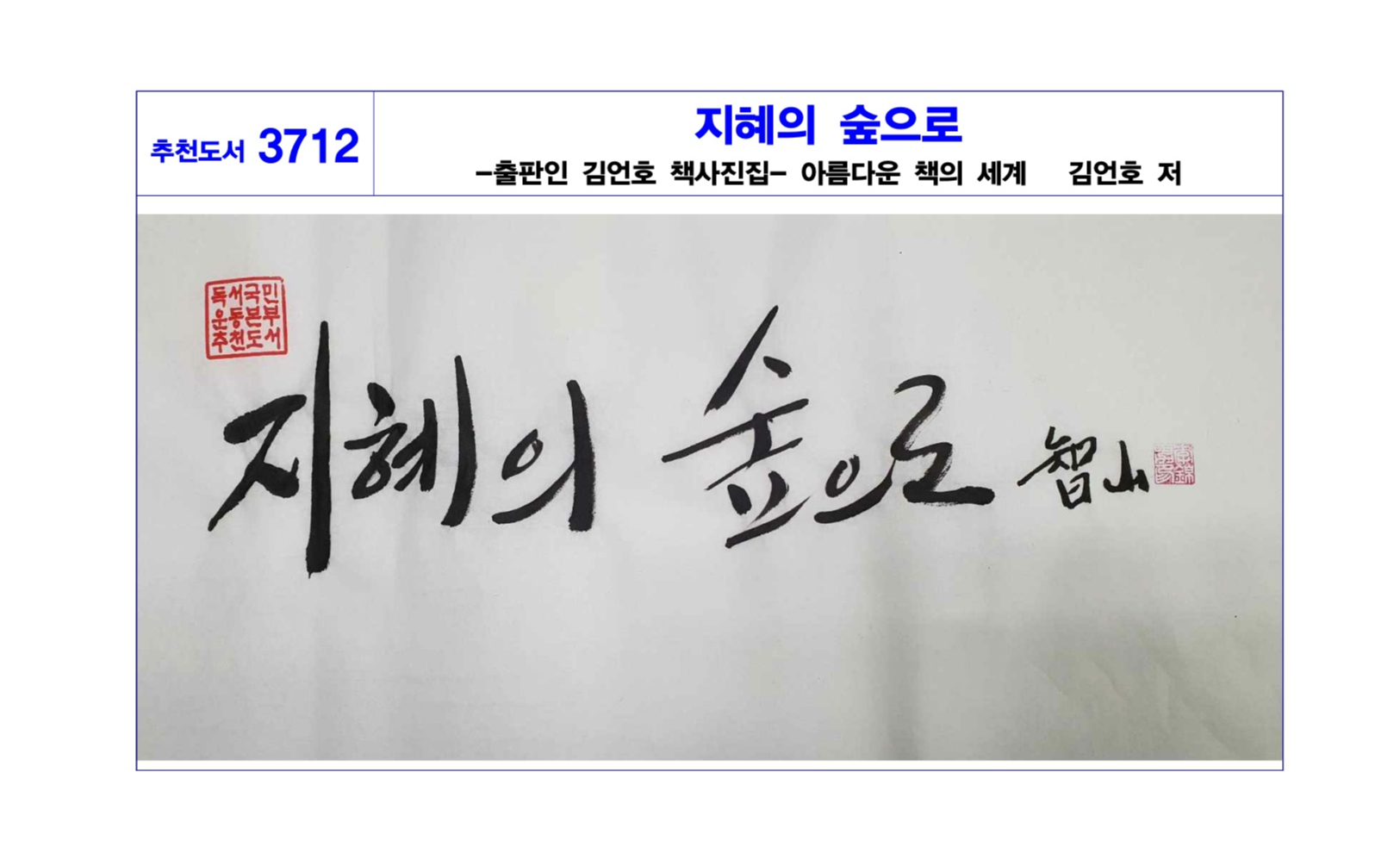 책은 삶의 이야기를 담아내는 그릇이고 다양한 빛깔의 생각들이 자유롭게 춤을 추는 장소다. 책 만들기는 세상을 아름답게 만드는 노동이며 정신의 축제라고 생각하는 출판 장인 김언호가 펴내는 책 사진집 『지혜의 숲으로』에서 그는 독자에게 세상에서 가장 아름다운 숲에서 책들의 합창을 귀 기울여 들어보라고 말하는 것 같다.
