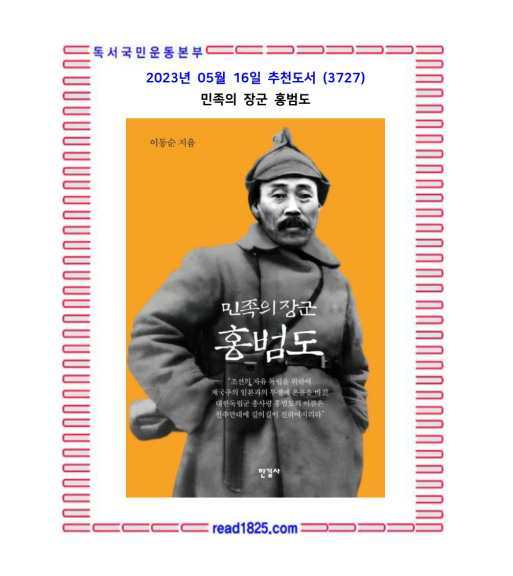 책의 후반에는 흑하사변(자유시참변)과 분열 그리고 카자흐스탄 크즐오르다에서 경비원, 정미소 노동자로 일하다 생을 마감한 홍범도 장군의 모습을 볼 수 있다. 2021년 장군의 유해가 크즐오르다에서 인천공항으로 봉환되는 장면은 가슴 뭉클하다. 홍범도 장군을 통해 한국의 근현대사를 꿰뚫는 넓고 깊은 평전이 탄생했다.