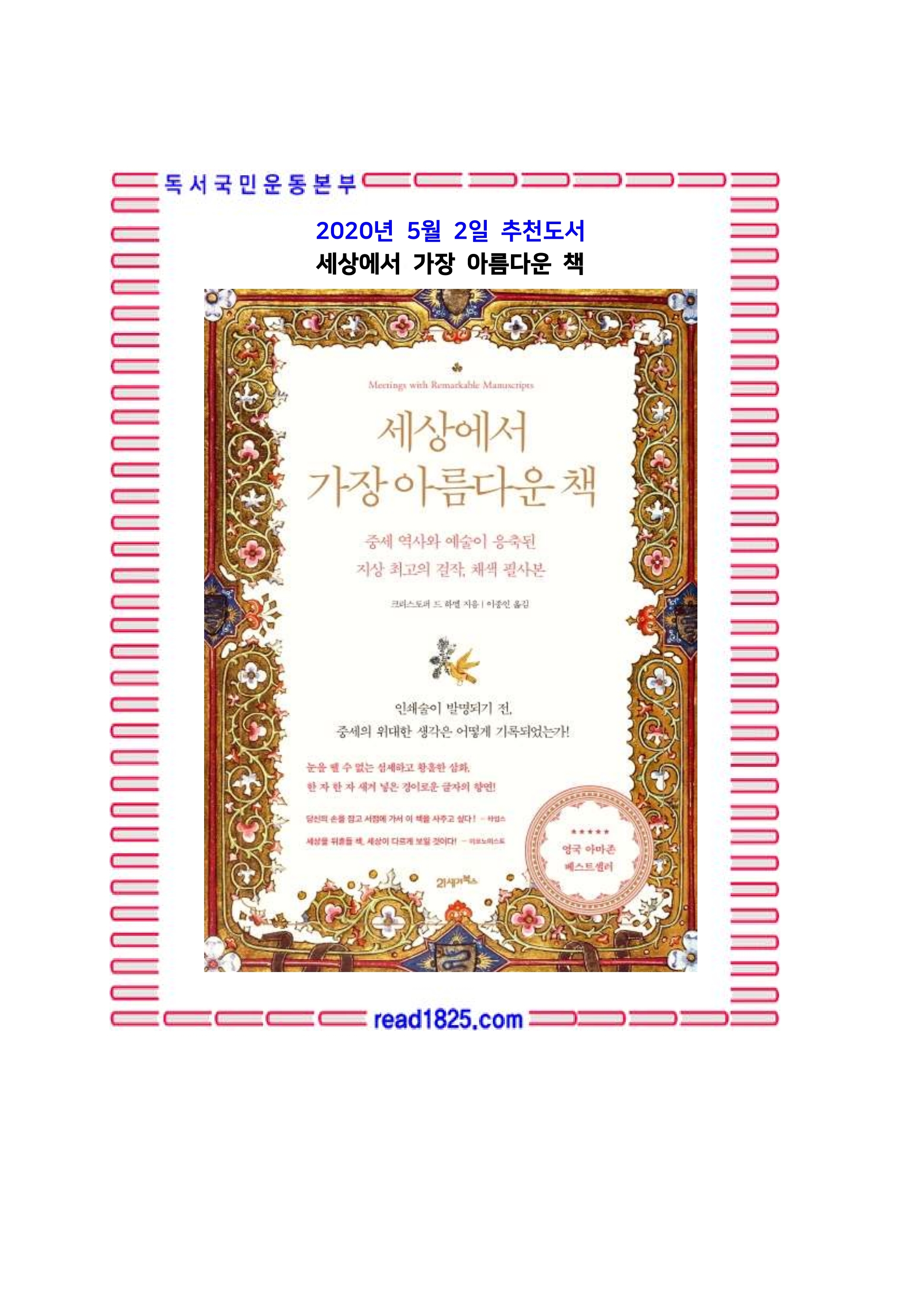 신간 『세상에서 가장 아름다운 책』은 필사본이라는 매력적이며 희귀한 소재를 통해 중세부터 현대까지 역사를 입체적으로 조명하고, 접하기 어려운 중세 예술의 장벽을 허문 기념비적인 책이다. 가장 오래된 필사본부터 성물로 여겨지는 필사본까지, 중세의 우아한 매력을 그대로 간직한 위대한 보물을 상세하게 설명한다. 영국의 펭귄랜덤하우스는 자신들이 출간한 책 중 가장 독창적인 연구서라고 밝혔고, 2016년 더프 쿠퍼 논픽션상, 2017년 울프슨 역사상을 받으며 학술적인 우수성을 높이 평가받았다.