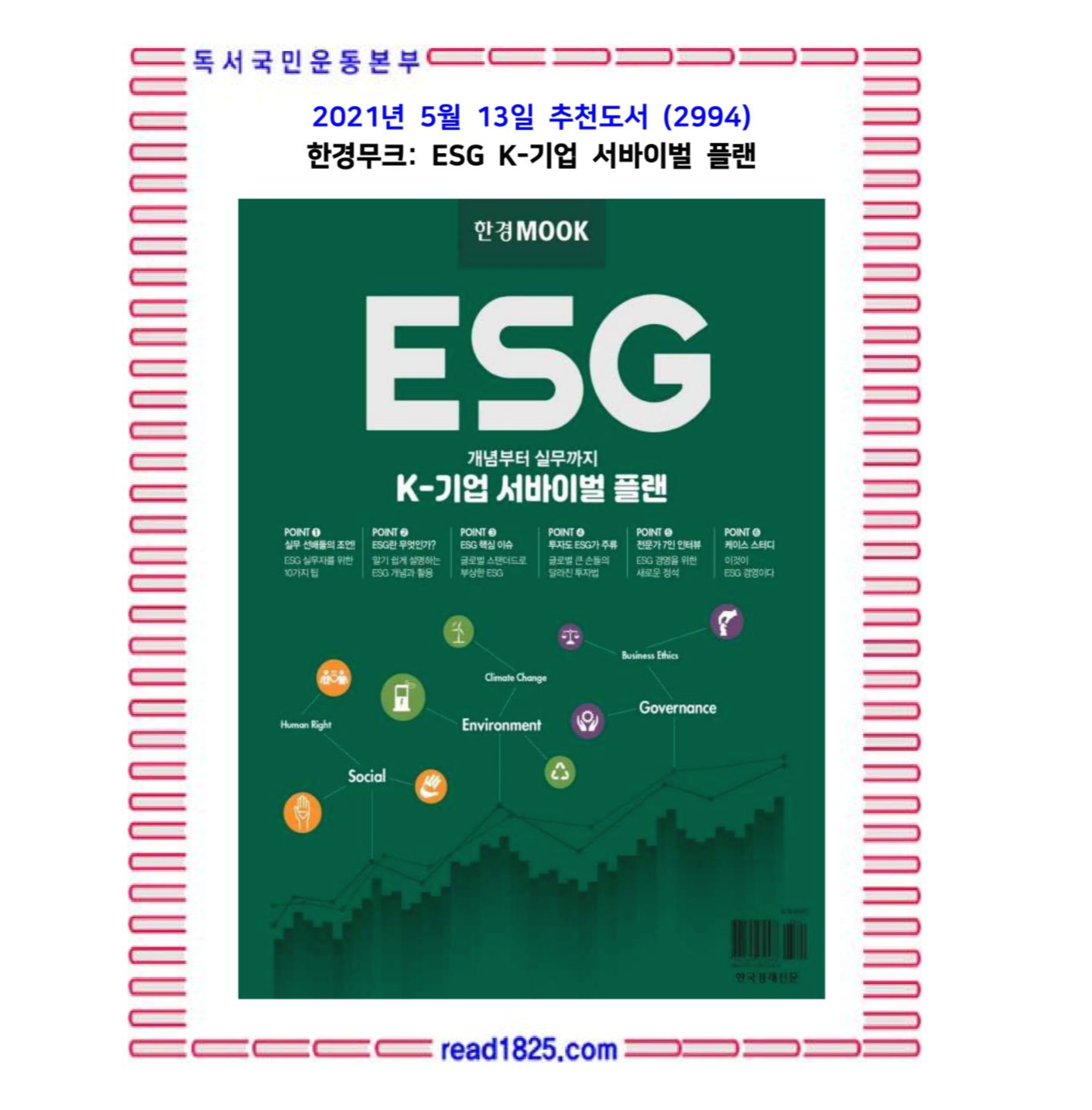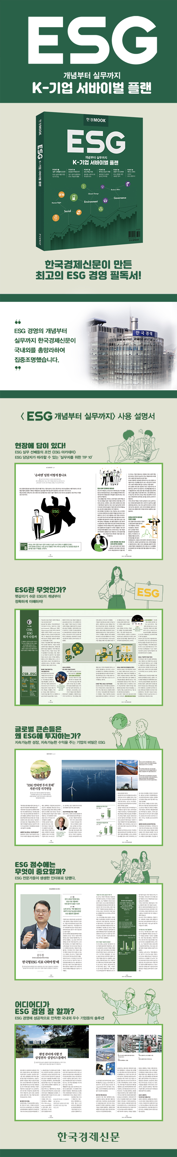 한국경제신문이 연세대, IBS컨설팅과 함께 개발한 ESG 평가모델을 기반으로 국내외 주요기업들의 ESG 데이터를 분석한 콘텐츠가 핵심이다. 읽고 나면 내가 속한 기업과 업종의 강점과 약점을 한눈에 들어온다. ‘파리 기후협약’이나 ‘RE100’ 같은 ESG 핵심 이슈도 일목요연하게 정리했다.