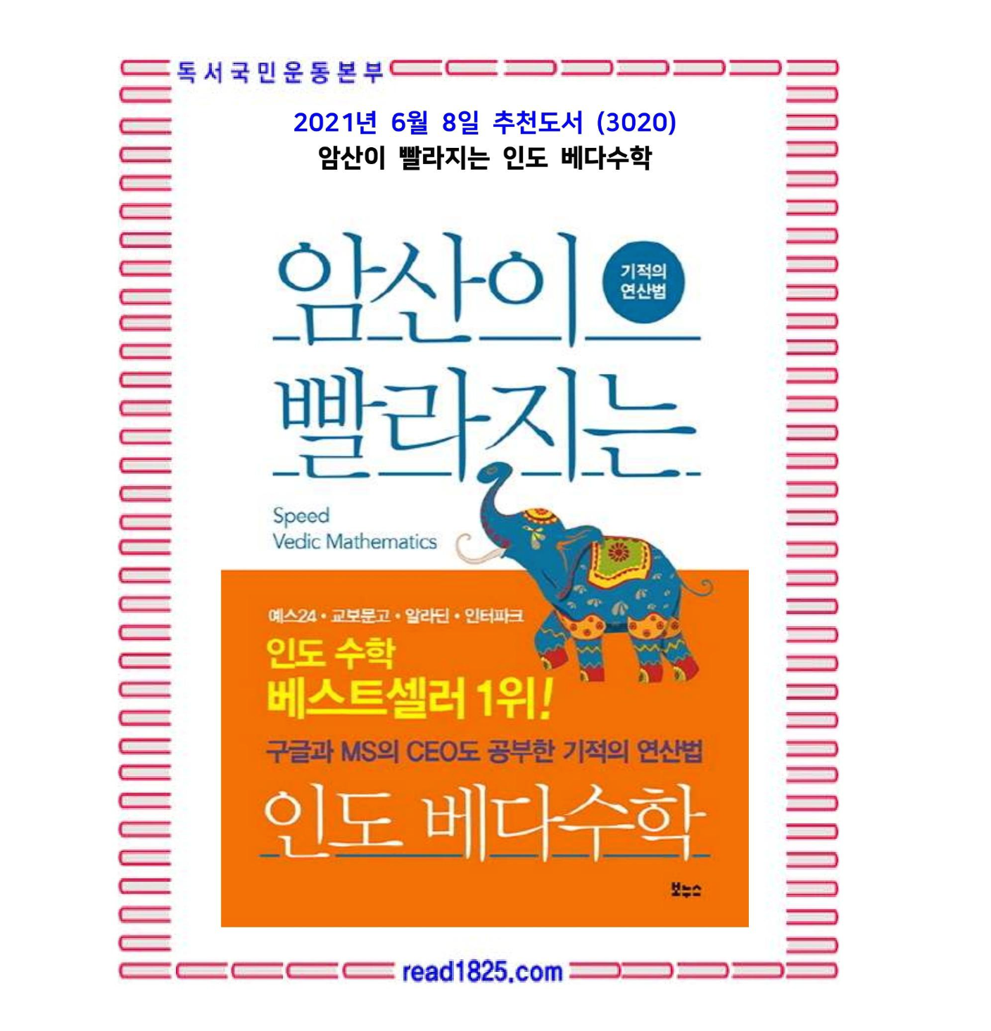 이처럼 인도수학의 계산법을 접한 이들은 누구나 그 빠르고 신기한 계산 방법에 놀라고, 수학의 원리를 꿰뚫고 있던 옛 인도인의 놀라운 통찰력에 다시 한 번 놀라게 된다. 인도수학이 ‘스피드 매쓰매틱스(Speed Mathematics)라는 별칭으로 불리며 미국과 일본 등에서 주목받고 있는 이유도 이 때문이다.