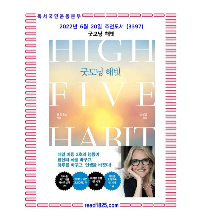 이 책이 소개하는 ‘굿모닝 해빗’은 자신을 바라보는 방식을 바꾸고, 삶의 에너지를 갉아먹는 자기비판을 멈추게 하며, ‘독이 되는 말’을 걸러준다. 죄책감과 남에게 맞추는 습관에서 벗어나 마음속 여러 장애물을 스스로 치우는 마법의 행동이다. 놀랍게도 이미 SNS를 통해 전 세계 수천만이 그녀의 아침 리추얼을 따라 하고 있으며, 이 책 역시 35개국에 번역 출간되었다. 이 책은 코로나 팬데믹을 겪는 동안 불안과 공포로 나약해진 마음을 다시 단단하게 회복하고, 당당하고 의욕적인 원래의 자신으로 되돌아가고자 하는 모든 이에게 큰 용기와 울림, 자신감과 실행 에너지를 줄 것이다.