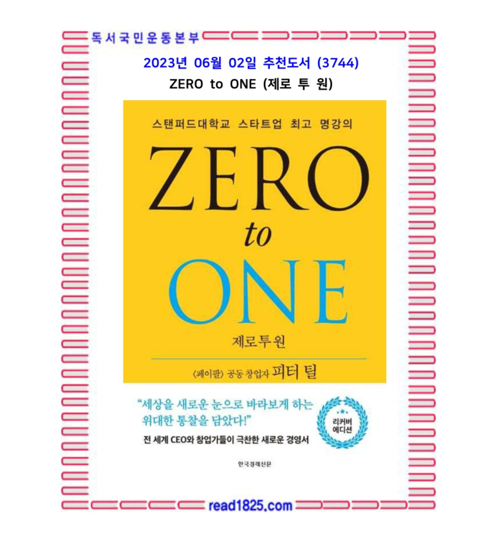 출처: 「ZERO to ONE (제로 투 원)」 출판사 한국경제신문