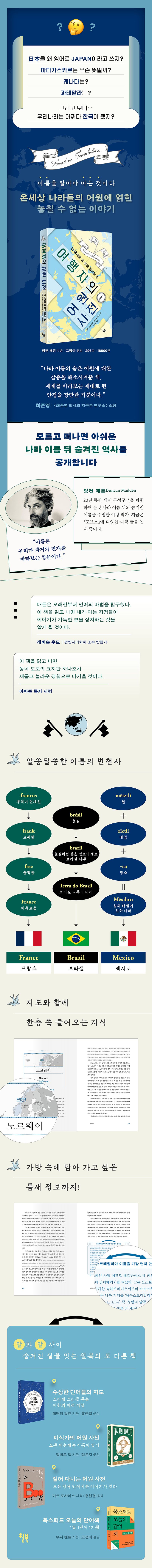 모든 이야기의 흐름이 단편적인 에피소드로 끝나지 않고 주변국과 이어져, 세계 이름의 어원을 거시적으로 살펴볼 수 있다는 것도 지적 재미를 더한다. 각 나라를 이루는 굵직한 문화·정치적 뿌리부터 언어의 변화 흐름까지, 마치 연쇄 작용처럼 이어지는 듯한 이야기들을 바탕으로 머릿속에 새로운 지식의 지도를 그려나가보자.