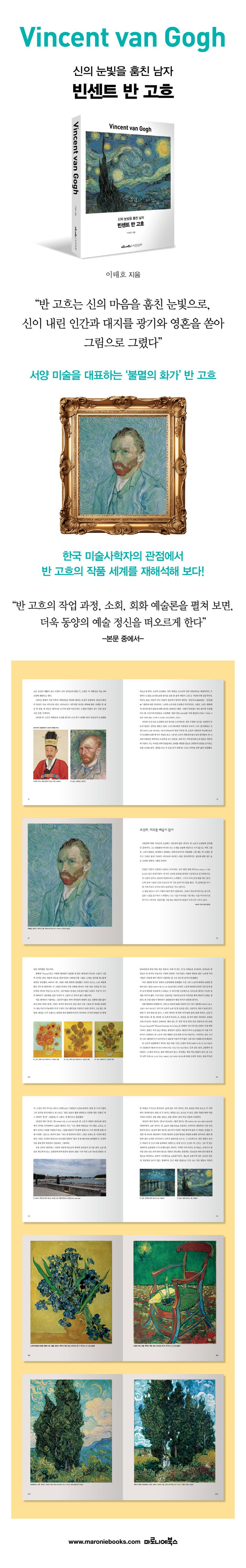 『빈센트 반 고흐: 신의 눈빛을 훔친 남자』는 이러한 반 고흐의 작품 100점과 함께 그의 인생 발자취를 따라가보는, 또 다른 반 고흐전을 독자들에게 선사한다. 작품은 인물화, 정물화, 풍경화로 크게 분류되며, 시간순으로 작품을 배치해 반 고흐 작품 세계의 흐름을 한눈에 파악할 수 있게끔 했다.