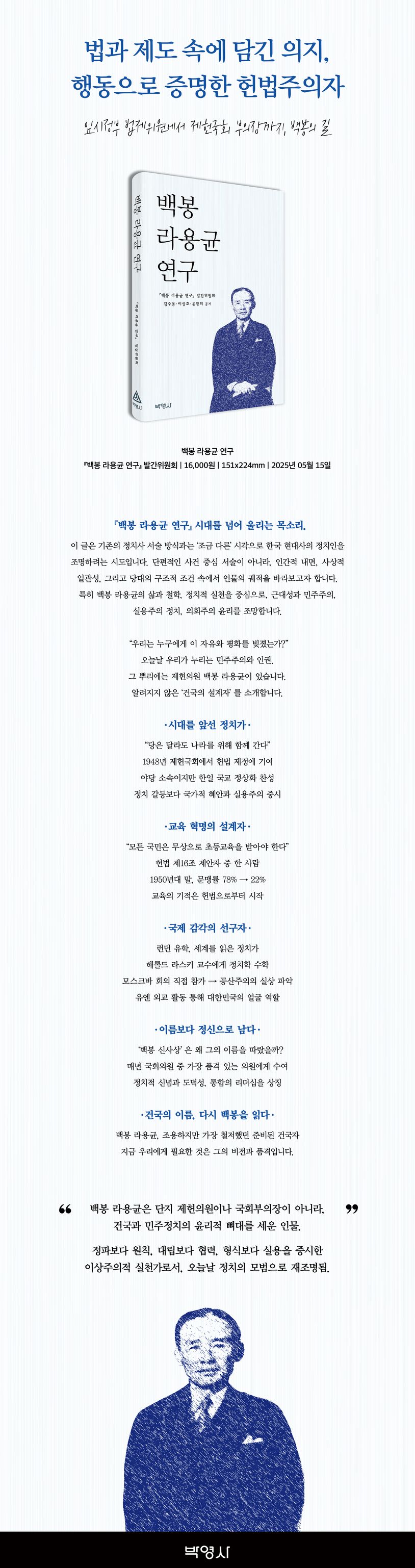 백봉 라용균을 공부하면서 여러 차례 회의를 거듭했던 지난 2년은 행복한 시간이었다. 많은 것을 배우고 깨닫는 시간이었다. 김주용 교수, 이상호 박사, 윤왕희 박사, 세 분이 흩어진 자료를 찾아서 좋은 논문과 원고를 쓰느라 수고를 많이 하셨다.