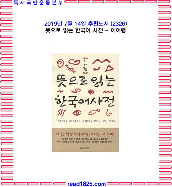 『뜻으로 읽는 한국어 사전』. 개정판. 저자 이어령이 한국어 뜻풀이를 통해 무심히 쓰는 일상의 말 속에 담긴 우리의 낯선 얼굴, 한국인의 입김과 살갗, 그리고 세계 문명의 바람 소리를 알려준다. 이 책은 크게 3장으로 나뉘어져 있다. 말 속에 담긴 우리말, 한자 말, 서양 말을 통해 그 속에 담긴 우리말을 들여다본다.