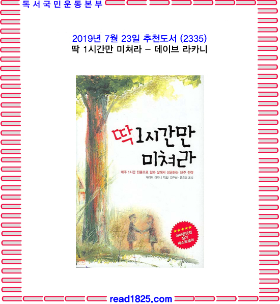 우리는 날마다 더 나은 삶, 더 나은 성과를 만들어내기 위해 하루를 시작한다. 그러나 가끔 성공하는 때도 있지만 실패하는 경우가 대부분이다. 왜일까? 그 이유는 우리가 낡은 방식에 계속 안주하기 때문이다. 하지만 매주 단 한 시간 투자만으로도 개인적으로 혹은 업무상으로 커다란 진전을 이룰 수 있는 방법이 있다. <딱 1시간만 미쳐라>가 제시하는 실천 전략이 바로 그것이다.