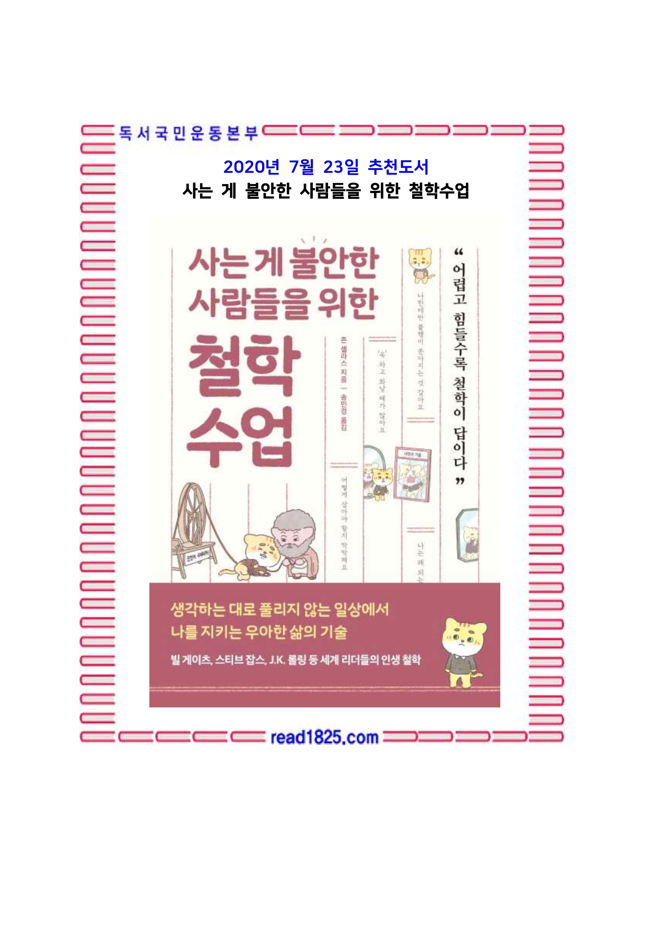 그런 사람들에게 스토아철학의 핵심을 담은 《사는 게 불안한 사람들을 위한 철학 수업》을 권합니다.