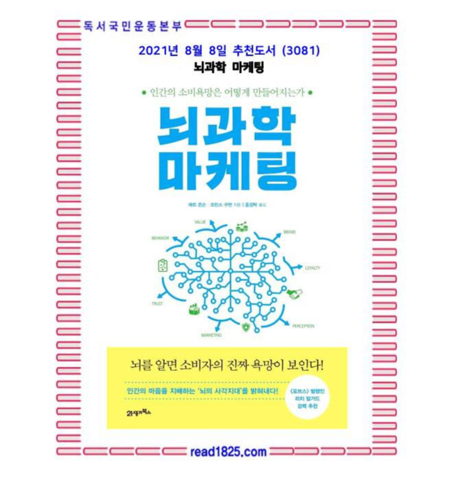 《뇌과학 마케팅》은 인간의 ‘뇌’와 ‘소비 행위’의 상호작용을 인지심리학과 신경과학을 근거해 밝히며, 소비자가 알지 못하는 사이 소비하게 되는 매커니즘을 낱낱이 분석하는 책이다. 출간 당시 〈포브스〉 발행인 리치 칼가드가 “일류 브랜드가 어떻게 우리 뇌에 스며들어 자리 잡는지 완벽하게 분석했다”고 극찬했고, “과학 연구와 현대 마케팅 사이의 연관성을 창의적으로 설명”하는 책으로 에비게일 서스먼, 주디 팬, 나탈리아 코르도바 등 세계 유수의 경영대 교수와 심리학 교수가 추천했다.