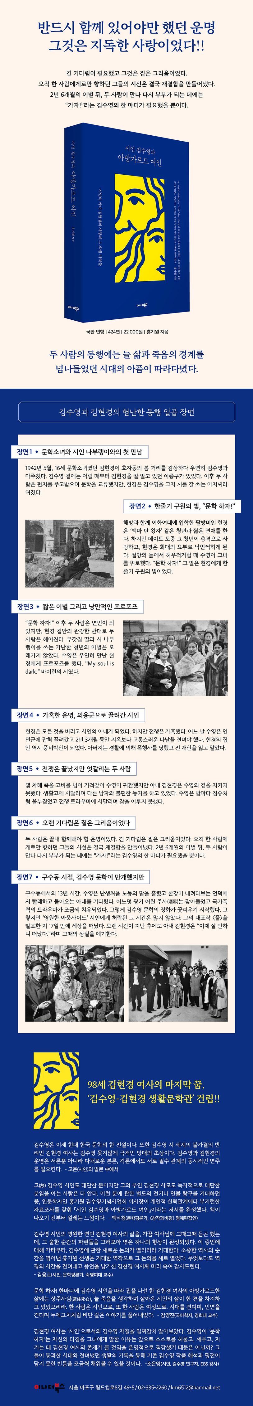 시인 김수영과의 첫 만남/ 태평양 전쟁의 와중에서 선생이 되다/ 위기일발, 체포령이 떨어진 새내기 교사/ 해방된 나라에서 시를 써야지/ 어디서든 빛이 나는 여대생/ 시로는 당해낼 수가 없겠네/ 박인환과 임화 그리고 배인철